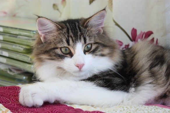 Ab und zu muss selbst unser kleiner Wirblwind Urania eine kurze Pause einlegen. Dies macht sie natürlich meistens schnurrend und am liebsten auf den Dingen, an denen ich gerade arbeite 🙂 So sind meine Decken im Moment alle Urania-geprüft und sie hilft tatkräftig bei der Arbeit mit.