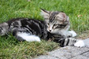 Norwegische Waldkatze, schwarz tabby gestromt mit weiss (NFO n 09 22) (Stammbaum), männlich,